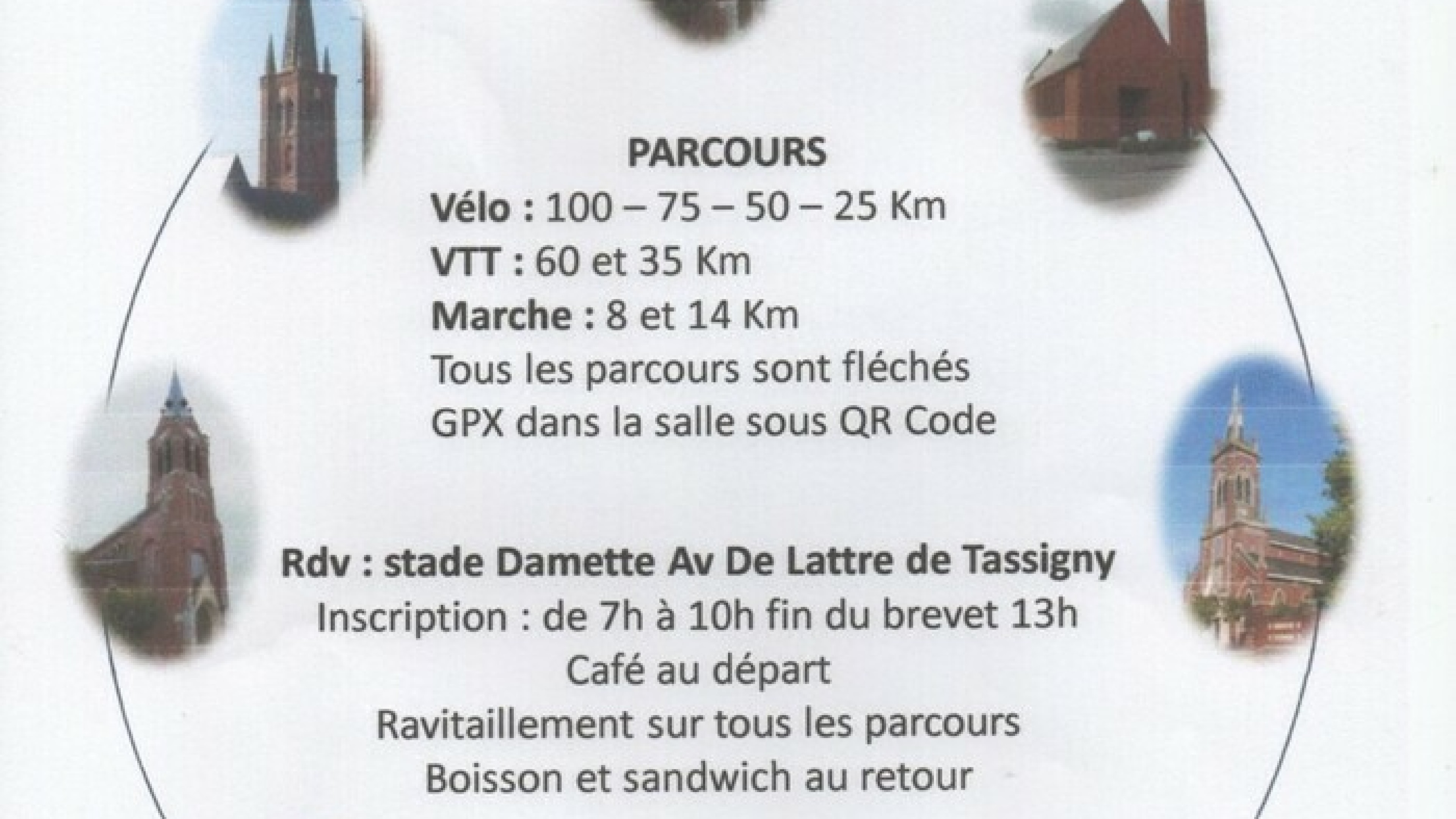 brevet cyclotouriste avec plusieurs cicrcuits velo route, vtt et 2 parcours de marche