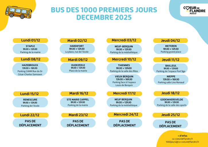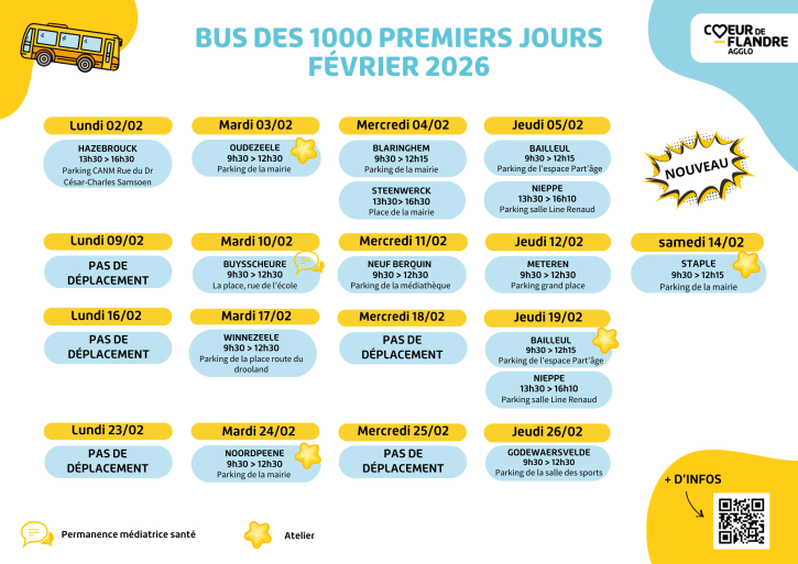 Depuis fin janvier, le bus des 1000 premiers jours sillonne les routes du Cœur de Flandre. Service gratuit et accessible à tous, ce bus est un lieu d’écoute, d’accompagnement et de soutien à la parentalité.