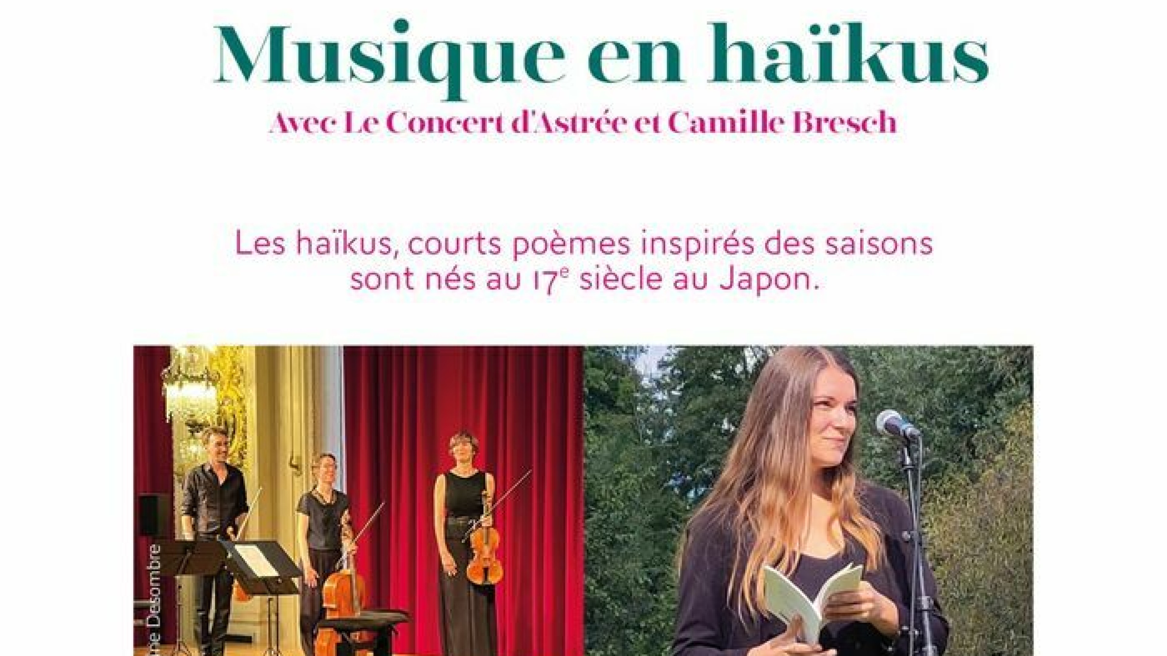 Pour le Printemps des Poètes, assistez à un concert-lecture où musique et poésie se mêlent, avec Le Concert d'Astrée et Camille Bresch.