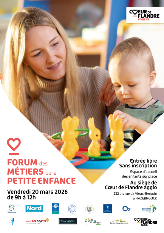Vendredi 20 mars, de 9h à 12h, Cœur de Flandre agglo organise son 4ème forum dédié aux métiers et formations de la Petite Enfance.