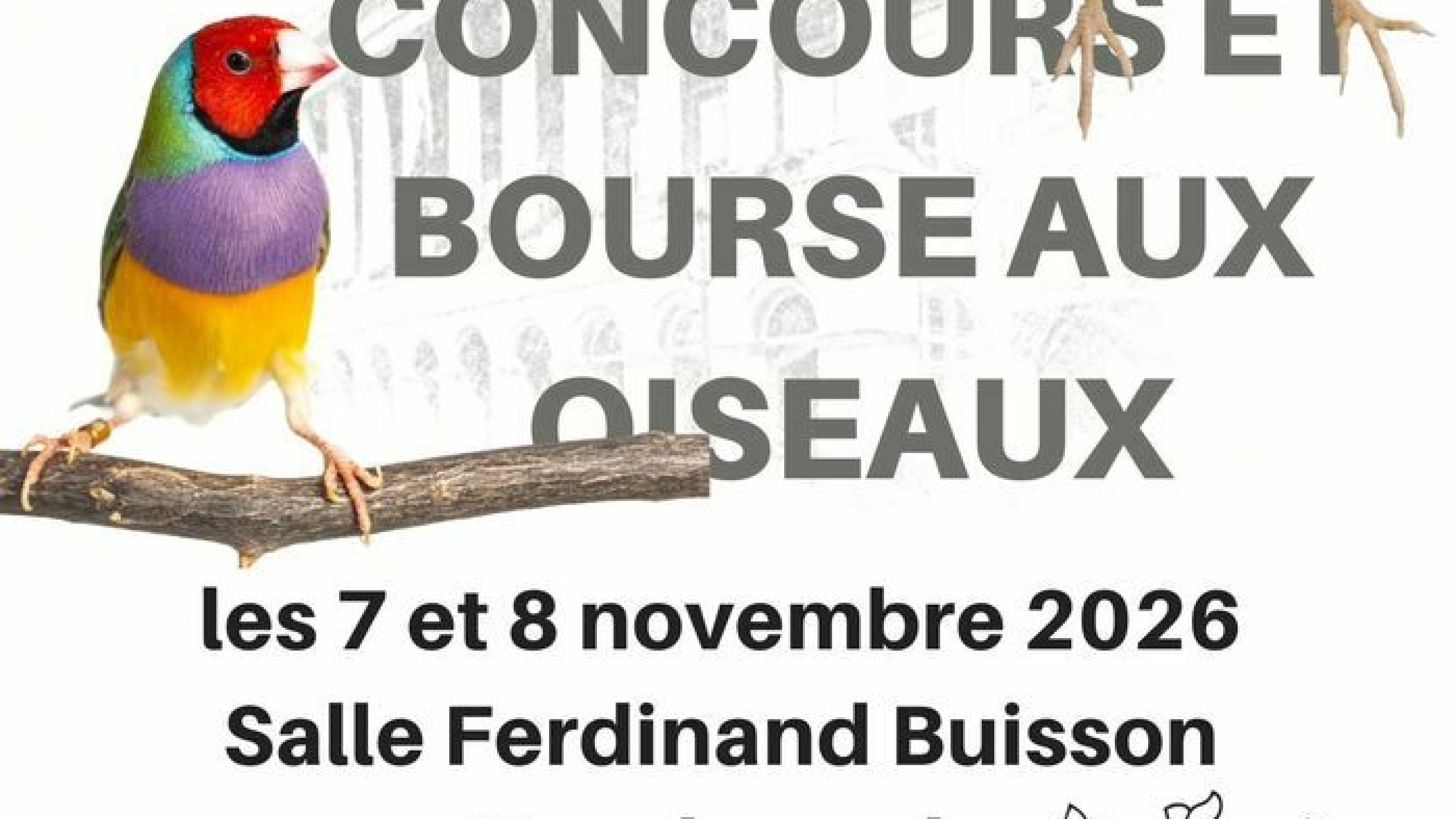 Concours de beauté d'oiseaux domestiques et bourse aux oiseaux les 7 et 8 novembre de 9h à 18h, à la Salle Ferdinand Buisson.