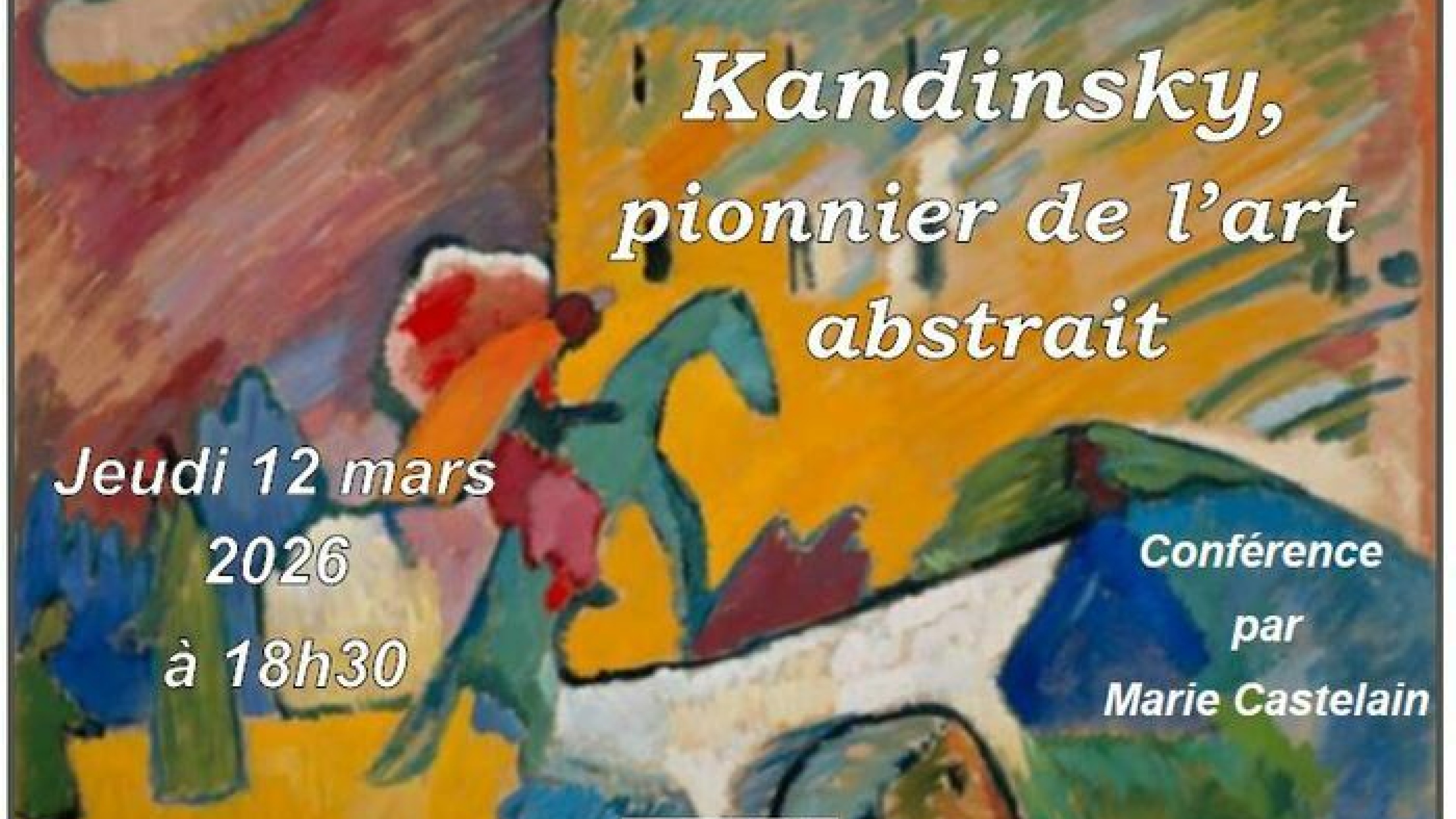 Vassily Kandinsky (1866-1944) pionnier de l'art abstrait, développa une oeuvre riche de réflexion sur le pouvoir de la couleur et de la forme expressionniste. Conférence en lien avec l'expo du LAM.